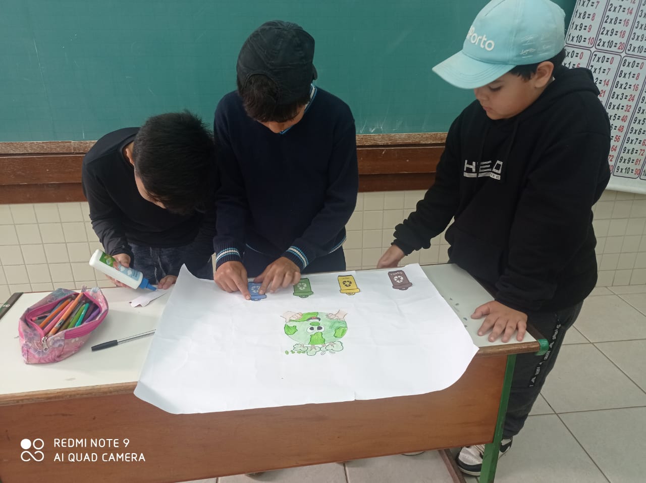 As atividades começaram com a confecção de cartazes que destacavam a importância da reciclagem e da separação correta dos resíduos.